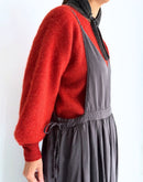 “赤毛の女の子のワードローブ”を現代の感性でアップデートしたような、どこか物語性を感じさせるキャミソールワンピース。 程よい肉感と落ち感をもつキュプラ素材を贅沢に使用し、歩くたびに揺れるドレープが美しい一枚です。 深めのVラインと、たっぷりと寄せられたギャザーがつくる柔らかな陰影。 サイドのリボンでシルエットを調整でき、ふんわりとした丸みのあるフォルムにも、縦のラインを強調したすっきりシルエットにもアレンジできます。 カットソー、タートル、軽いニットなど、インナー次第で季節を問わず活躍。 シンプルな装いに重ねるだけで、ぐっとニュアンスのあるスタイルが完成する、matureな雰囲気を纏うワンピースです。 Made in Japan