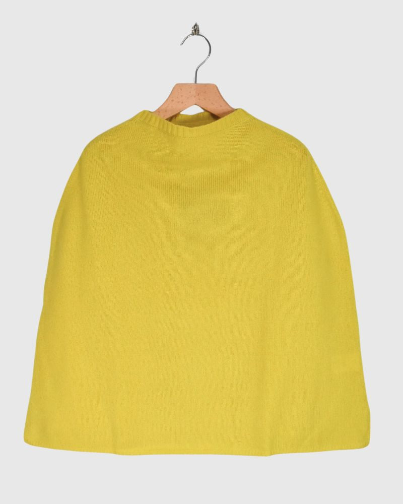 Code : g527_ye Brand : (g)   ウール80% ナイロン20%Free:肩巾約55cm 着丈57cm 裾幅65cm   ウールナイロン素材で柔らかく程よい厚さで、肌触りが良い生地感のニットケープ。フロントにボタンや留め具がなく、さっと被るだけで着られる便利なデザインです。すっぽりと肩を包み込むシルエットで、室内でもちょっと肌寒いときに気軽に使える軽くてシンプルな1枚。