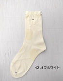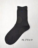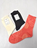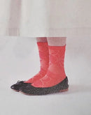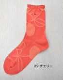 編み地の凹凸とメッシュ編みでチェリー柄を表現した薄手のソックスです。内側が綿素材になるので優しい履き心地です。つま先はリンキング仕様でごろつき感が少なく色々な靴に合わせやすい1足です。