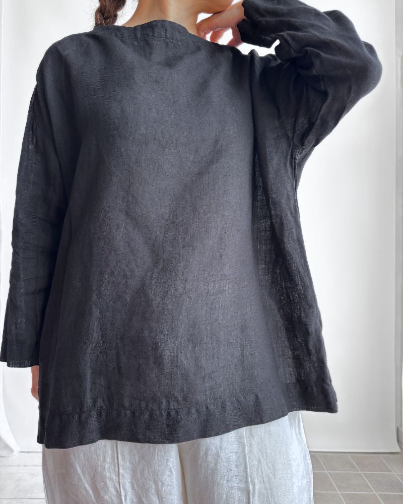 オーガニックベルギーリネン シンプルプルオーバー Noir