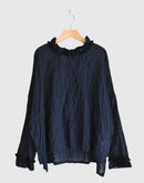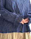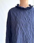 チェックネックフリル ボックスプルオーバー NavyCheck
