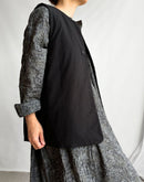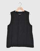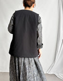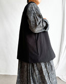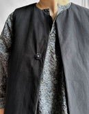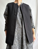 ふんわりとした軽さの中綿入りベストです。表地にはオーガニックコットンのタイプライター生地を使用しています。生地表面に細かな皺形状を付与し、さらりとした肌触りに仕上がっています。薄手のウール中綿を用いた軽く暖かな着心地が魅力。コーディネートのプラスアイテムとしておすすめの 1 着です。フロントはスナップボタン開き。日本製