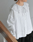 【予約】S/S G1166 ORIGINAL SMALL DOTS 2WAY FRILL BLOUSE(3月初旬 – 3月中旬)