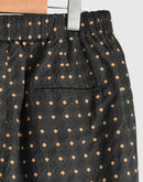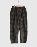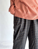 新柄のオリジナルプリントです。 全体的にワイドでゆったりとした履き心地と、裾はやや狭めのテーパードに近いシルエットです。更にキレイなスタイルを保ちやすいよう、ウエストにタックを施しました。インド製