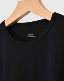 80/2の細番手の糸をハイゲージに編み上げ、薄手ながら適度なハリ感と滑らかさを持たせました。さらに、生地にバイオ加工と特殊な柔軟加工を施し、柔らかな風合いに仕上げています。オーバーサイズでありながら女性らしいしなやかな肌触りでしっとりと寄り添う1枚です。made in Japan