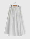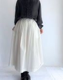 柔らかなツイル生地を贅沢に使い、たっぷりとしたタックで立体感を出したフレアスカート。 ウエストは総ゴム仕様で、ドローコードによるサイズ調整も可能。 動くたびにふわりと揺れるシルエットが、女性らしい上品さとリラックス感を演出します。 両サイドには便利なポケット付き。 シンプルながらも存在感のある一着で、カジュアルからきれいめまで幅広く活躍します。