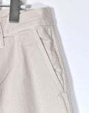 パンツです。製品染ならではの、風合いのあるムラ感を楽しめる生地と春らしい色が魅力です。