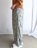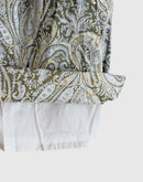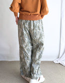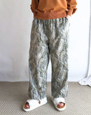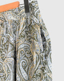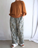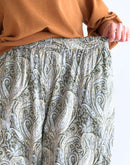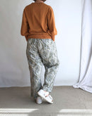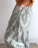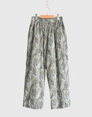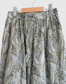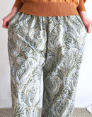 上品でクラシカルなペイズリー柄が魅力のLIBERTYプリントパンツ。コットン100%の軽やかな生地が心地よく、ゆったりとしたシルエットとウエストゴム仕様でリラックスした履き心地を実現します。繊細なペイズリーパターンが落ち着いた印象を与え、シンプルなトップスと合わせるだけで洗練されたコーディネートに。カジュアルにもシックにも着こなせる一枚で、上質な日常スタイルをお楽しみください。日本製