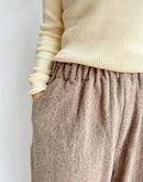 この技術を使って作られたニット製品は、縫い目が一切なく、編み機で一気に立体的に編み上げられます。一般的なニット製品は複数のパーツを編んでから縫い合わせるため、縫い目が生じますが、ホールガーメントでは、縫い目がないため、肌に余計な刺激を与えず、柔らかな着心地が実現。無縫製であるため、伸縮性が高く、体の動きに自然にフィットします。この技術は特に高品質なニット製品に用いられることが多く、着心地やより美しいシルエットを楽しめます。日本製