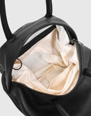 月の満ち欠けをイメージした丸いフォルムが特徴の小ぶりなボストンバッグ。肌触りの良い滑らかなカウレザーを漉いて、しなやかに加工を施した後、さらに柔らかさを出すための加工を施し、上品な表情と手触り感を表現。日本の熟練した職人の手によって作られたレザーを使用しています。コットンの内布を使用し、内側にはポケットが2つ、ファスナー付きポケットもあり、カバンの中身もきちんと整理できる仕様になっています。made in Japan