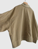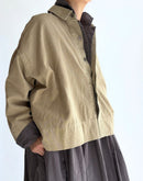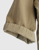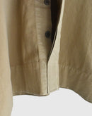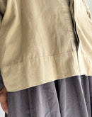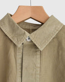 デニムの産地である岡山県井原市の機屋にて織られた柔らかさが特徴のツイル素材です。特殊な解撚処理を施した糸を使用しており、洗えば洗うほど糸の撚りがなくなり柔らかさが増すのも魅力です。衿と前立てにコットンの別素材を使用しています。柔らかな素材感が魅力のシャツ。前開きは裾のみ閉じたプルオーバーデザイン。衿と前立てには別素材を用いてハリを出し、端正な雰囲気もプラスしています。日本製