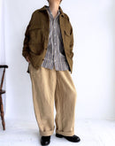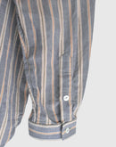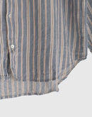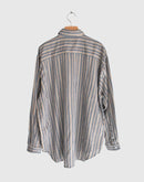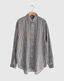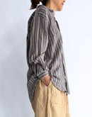 手織りのオリジナルのストライプ生地。肌に心地よく、そして印象的なマルチストライプをデザイン。秋のアイテムに合う番手のシャツ生地で 、少しくすんだカラーを取り入れ、さらに製品洗いをする事によりヴィンテージの雰囲気があります。日本で江戸時代からベンガラ縞として親しまれてきた織物と同じ織り方で親しまれたベンガル地方の縞織物です。インド製