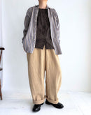 生地の表情は1点1点異なります。手織りされた自然素材の風合いとしてお楽しみください。すべてが手作業の生産工程ですので、小さな汚れや生地のヨレ、糸の節などが見られますが手仕事の味としてご理解をお願いします。