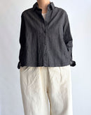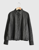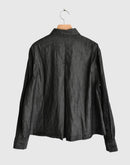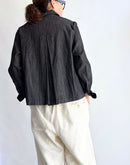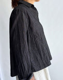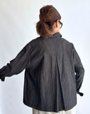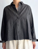 軽やかな4.5ozブラックデニムを使用したショート丈のシャツ。コットン100%で柔らかく、着心地の良さが魅力です。シンプルなデザインながら、丸みを帯びたポケットが可愛らしいアクセントに。すっきりしたシルエットで動きやすさ抜群。カジュアルなコーディネートから、少しモードな着こなしまで幅広く楽しめる一着です。ブラックデニム特有の深みのある色合いが、季節を問わず活躍します。日本製