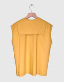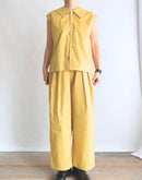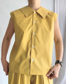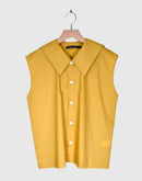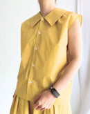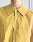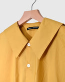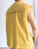 コットン100%のコンパクト糸を高密度に織り上げたポプリン生地使用。セーラーカラーが後ろ姿を可愛くみせてくれるブラウスです。上品な素材が甘くなり過ぎず、印象的な衿は、暑い季節もシンプルに着てポイントになります。アームホールは一枚でも着やすい絶妙な開き具合。フロントの大きなボタンもポイント。made in Japan