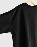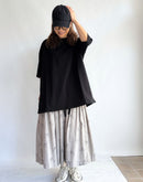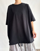 オリジナルカラーの生地は度詰めの裏毛編みで、ネップ糸を表糸に使用。ネップ糸で生地に表情を出しました。ハリがあり型崩れしづらいのが特徴です。 人気のデザインを生地替えして作りました。肘が隠れるドロップショルダー、裾にはぐるりとヒモを通しお好みの長さにブラウジング可能です。日本製