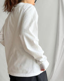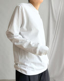 軽く、ドライでナチュラルな質感の生地を使用したロングスリーブTEEです。度詰めで編み立てているので型崩れしにくい素材です。インナーとしても着用しやすいよう袖口はリブ仕様になっています。日本製