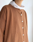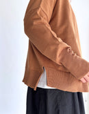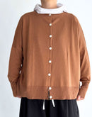やわらかな表情と、ほどよい存在感をあわせ持つ ドローストリング仕様のフーディプルオーバー。 素材には、40/2クラシック天竺コットンを使用。 なめらかで肌なじみがよく、空気を含んだような軽さと、 デイリーに着やすい程よいハリ感を兼ね備えています。 首元のフードは、スポーティになりすぎない控えめなデザイン。 さりげなく添えられたドローストリングが、 シンプルな中に静かなアクセントを与えてくれます。 身幅にゆとりを持たせたリラックスシルエットと、 バランスの取りやすい着丈で、 ワイドパンツやスカートとも好相性。 一枚ではもちろん、コートやロングカーディガンのインナーとしても活躍します。 気負わず着られて、自然と装いが整う一着。 季節を問わず、日常に寄り添ってくれるトップスです。 日本製