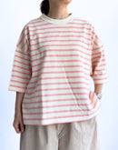 ユーティリティドルマンスリーブ デラヴェボーダーTシャツ Kinari/Pink