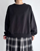 オリジナル裏毛生地を用いたスウェット『ABBY』。弾力とストレッチ性に加え、ソフトな肌触りが心地良いループ双糸によるふっくらとした仕上がりを追求したハイゲージソフト裏毛。度詰めに編み立てることで出る、控えめな光沢感に上質さがうかがえる。クルーネックタイプのオーバーサイズシルエットで、ゆとりを持たせたリラックスフィット。生地感とデザインが相まって、着心地良く、デイリーに着用して頂けるスウェットです。ほどよい肉感のスウェットですので、春・秋・冬と3シーズン活躍してくれます。カジュアルながらフェミニンな雰囲気も持ち合わせ、使い勝手とデザイン性を両立させた"nicholson&nicholson"らしさのある一枚となっております。made in Japan