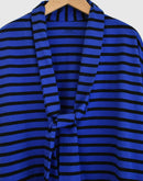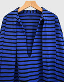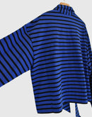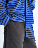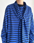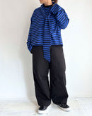 メキシコ産のタコスコットンを使い、先染めのボーダー柄を少し目を詰めて、丁寧に編み上げています。糸にはふっくらとしたふくらみがあり、やさしい風合いが魅力。ほどよい厚みとハリ感があるので、型くずれしにくく、きれいなシルエットをキープしてくれます。太めのタイは着回しのポイントとして、リボン結びでニットと合わせたり、ラフにほどいてジャケットを羽織ったりと着回しをお楽しみいただけます。日本製