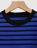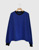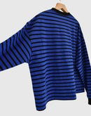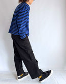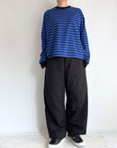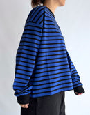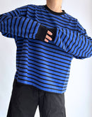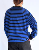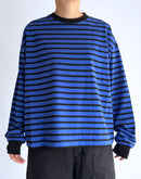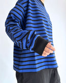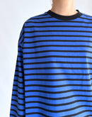 メキシコ産のタコスコットンを使い、先染めのボーダー柄を少し目を詰めて、丁寧に編み上げています。糸にはふっくらとしたふくらみがあり、やさしい風合いが魅力。ほどよい厚みとハリ感があるので、型くずれしにくく、きれいなシルエットをキープしてくれます。0.8×1.5ピッチの秋冬を感じる配色ボーダー生地に。1枚でも様になる肉感とインナーとしても重宝するサイズ感にこだわったアイテムです。日本製