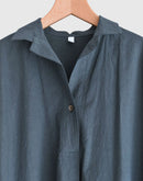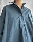 スキッパーフレアドレスは、上質な80番手タイプライター硫化染めコットンを使用したワンピース。軽やかでハリのある生地感が、美しいフレアシルエットを引き立てます。胸元はスキッパーデザインで抜け感をプラス。ゆったりとした身幅とドロップショルダーで、リラックスした着心地ながらも上品な印象に仕上がります。両サイドには便利なポケット付き。日常使いはもちろん、特別なお出かけにも映える一着です。日本製