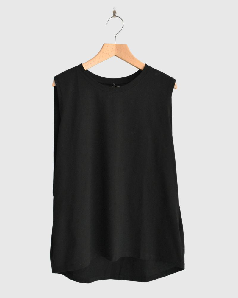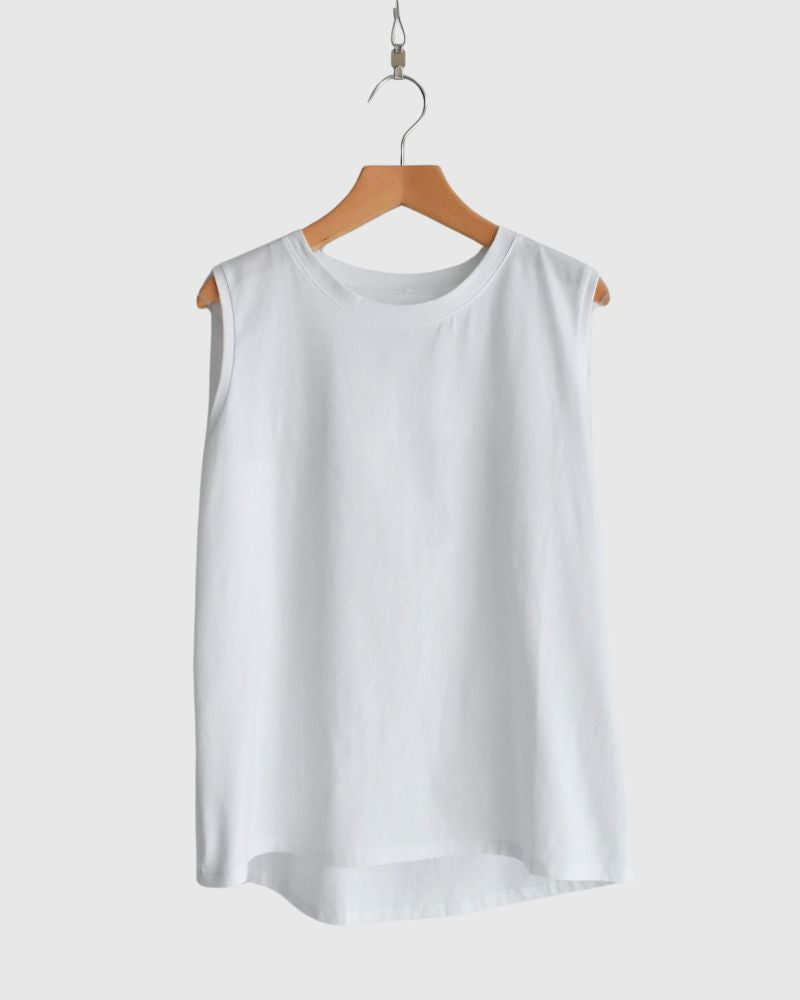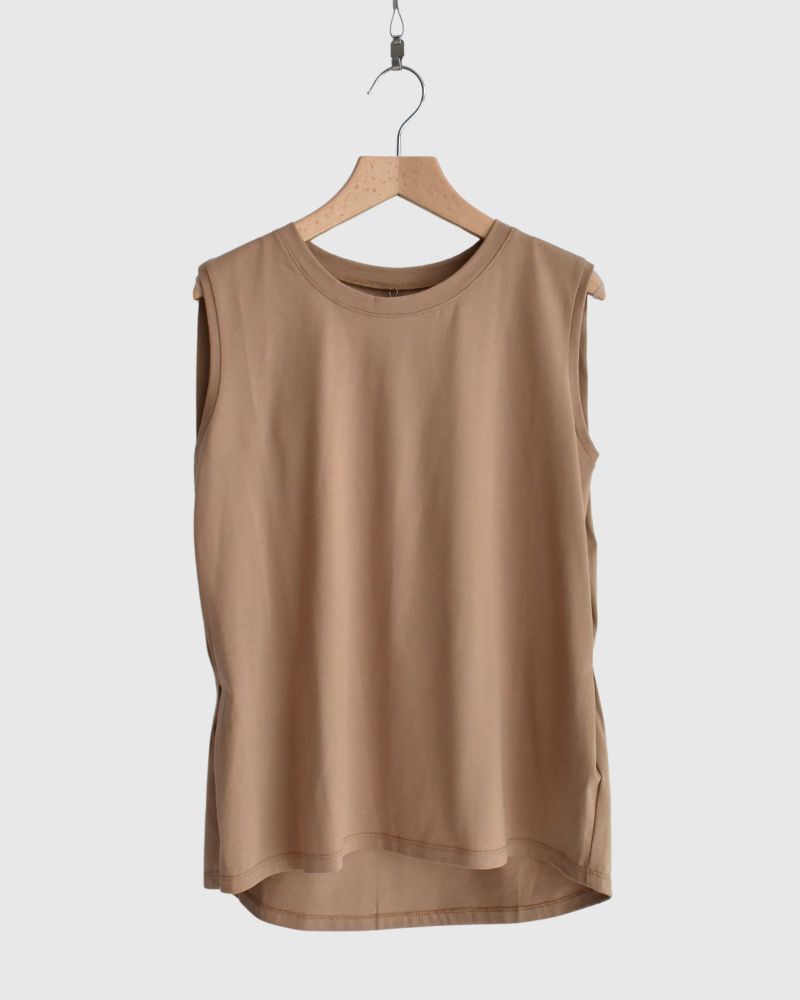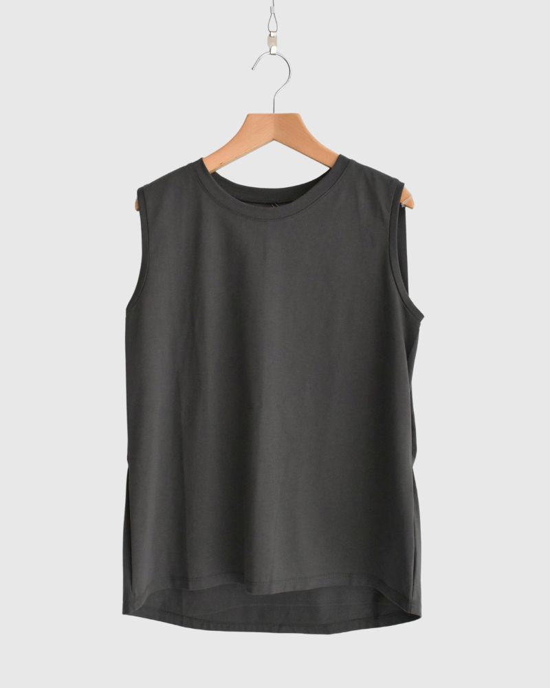 肌触りの良い国産コットン天竺を使用した、上品な光沢としなやかな落ち感が魅力のタンクトップ。 肩に入れたタックディテールがフェミニンなアクセントとなり、シンプルながら立体的な表情を生み出します。 前後差をつけたヘムラインはボトムスにすっきりと収まりつつ、腰まわりをさりげなくカバー。 アームホール...