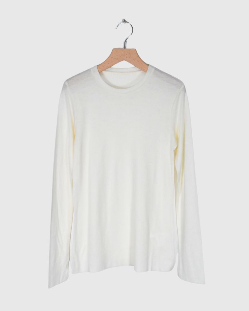 上質なスーパー100’sウールを使用した、肌ざわりの良いスリムフィットシリーズのクルーネックトップ。 超極細メリノウール糸を用いて編み立てられたフライス生地は、ウールとは思えないほどなめらかで柔らか。 チクチク感がなく、素肌に直接着ても快適です。 程よく身体にフィットしながらも締めつけ感...