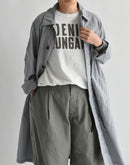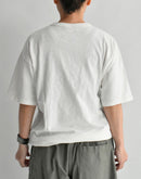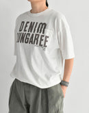 コットン100%の柔らかな天竺素材を使用した、DENIM DUNGAREEのポケットTシャツです。さらりとした肌触りで、日常に心地よく馴染む一枚です。フロントには大きく「DENIM DUNGAREE」のロゴプリントを配置。ポケットの上からプリントを施しているため、ポケットの縫い目部分にインクの溜まりが生まれ、1点ごとに異なる表情を楽しんでいただけます。ほどよくゆとりのあるシルエットで、リラックスした着心地。デニムやカジュアルなパンツ、スカートなどとも合わせやすく、デイリーに活躍するアイテムです。