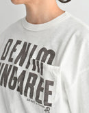 コットン100%の柔らかな天竺素材を使用した、DENIM DUNGAREEのポケットTシャツです。肌触りの良いさらりとした生地で、デイリーに心地よく着ていただけます。フロントには大きく「DENIM DUNGAREE」のロゴプリントを配置。ポケットの上からプリントを施しているため、ポケット部分の縫い目にインクの溜まりが生じ、1点ごとに異なる表情が生まれるのも魅力です。ゆったりとしたシルエットで、リラックス感のある着心地。シンプルなパンツやデニムと合わせるだけで、程よく存在感のあるカジュアルスタイルが完成します。