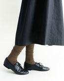 細い綿糸で薄く編み立てたオーバーニーソックスです。TOPはゴムはゆったりめに仕上げ、食い込みを軽減させました。たっぷりと長いのでタイツ代わりに伸ばして履いたり、クシュクシュさせたりとお洋服に合わせて着こなしを楽しめる1足です。(天然有機系デオドラント加工を施した糸なので抗菌効果により汗の匂いの原因となるバクテリアの繫殖を抑え、抗菌防臭作用が期待されます。)