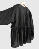 リネンギャザー リボンカバーオール Black
