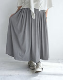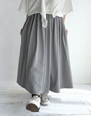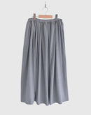 軽やかなポリエステル素材を使用したUVカット機能付きギャザースカート。 たっぷりと寄せたギャザーが美しいドレープを生み出し、動くたびにふんわりと揺れます。 ウエストは総ゴム仕様で、内側のドローコードでサイズ調整が可能。 シンプルなデザインと上品なミディ丈で、カジュアルからきれいめまで幅広く活躍します。 シワになりにくく、デイリー使いにも旅行にも便利な一枚です。日本製