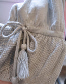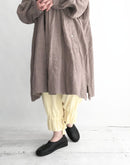 コットンシルクを天竺編みした春からのレイヤードコーディネートにぴったりなニットピエロパンツ 裾に揺れるタッセル紐が、さりげなく個性を添える玄人好みなディーテールで◎。made in China