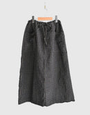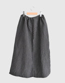 さらりとした肌触りと清涼感のある、リネン100%のチェック生地を使用したイージースカートです。 製品染めならではの、縫い目部分に生まれる自然なパッカリングや、奥行きのある色合い、やわらかな風合いが魅力です。 裾幅とウエストをゆったりと取ったストレートシルエットは、軽やかな落ち感があり、自然な広がりを楽しめます。ウエストは紐で調整する仕様で、締め付け感がなく、リラックスした穿き心地です。紐を絞ることで、やわらかなギャザーが生まれ、程よいボリューム感のあるシルエットに。 風通しのよいリネン素材で、これからの季節に心地よくお使いいただける一着です。 リトアニア製