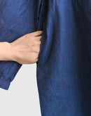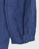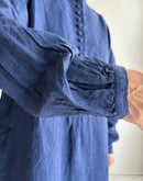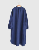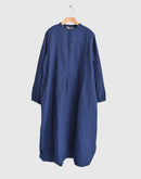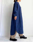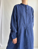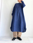 深みのあるインディゴカラーが印象的な、ichi Antiquite’s「インディゴリネンドレス」。100%リネン素材を使用し、さらりとした質感と自然な風合いが魅力です。フロント上部に並んだ共布のくるみボタンがクラシカルなアクセントとなり、シンプルなシルエットに品のある表情を添えています。ゆったりとした着心地で、両サイドには便利なポケット付き。1枚で存在感のあるスタイルが完成する、大人のための上質なリネンドレスです。日本製