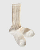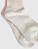 自然界の持つ本来の色彩・柔らかさ、そのままの心地よさを感じられるオーガニックコットンを使用したソックス。甘く編まれた長めのリブ編み。肌に触れる内側の足底部分がパイル地(糸をループ状に編みたてた生地)なので、柔らかな履き心地。夏は汗を吸収し、冬はふんわり温かく穿いていただけます。無染色で原料本来の色をそのまま活用する事に拘った素材。生地本来の柔らかさを引き出し、心地良い肌触りに仕上がっています。日本製