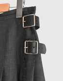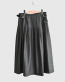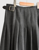 WORSTED WOOL LOW WAIST PLEATS WRAP SKIRT LENGTH 80cm (WITH PIN) Gray