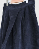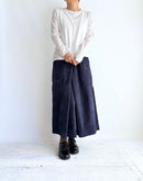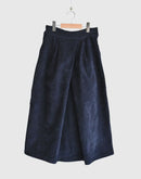 両面起毛で柔らかな肌ざわりと、上品な光沢が魅力のタックデザインスカート。 ストレッチ性のある厚手のポリエステルジャージーを使用し、滑らかな着心地でウールが苦手な方にもおすすめです。 フロントのクロスしたタックが立体的なラインを生み、きちんと見えしながらリラクシーな着用感。 後ろウエストはゴム仕様でフィット感があり、デイリーからオケージョンまで幅広く活躍します。 同素材のハイネックフレアトップ(LKL25WCS2012)とのセットアップも楽しめる一着です。