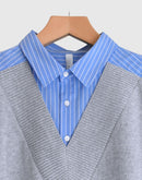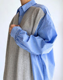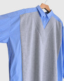 ニットベスト重ね着風ストライプシャツワンピース 'APOLU' Saxe