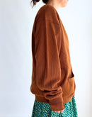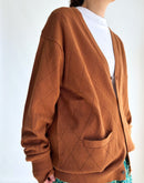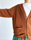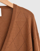 菱形の編み地とストライプ状の編み地を組み合わせたデザインが、 シンプルながら表情のある一枚に仕上げています。 透かし編みならではの軽やかさがあり、季節の変わり目にも取り入れやすいデザインです。 柔らかなコットン糸を使用し、 くたっとしたやさしい肌触りが特徴。 長めに設定された袖丈が、ほどよくラフでカジュアルな印象を添えます。 Tシャツやタンクトップの上からさっと羽織るだけで、 肩の力を抜いたリラックス感のあるスタイルに。 日常使いしやすく、タウンユースにも自然と馴染むニットカーディガンです。