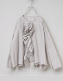 印象的なフリルが目を引くブラウスです。