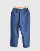 WASHED COTTON/LINEN EASY TAPERED PANTS Blue