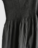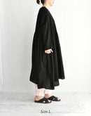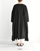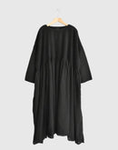 オーガニックコットン100%の、薄手で軽やかな素材を使用したプルオーバードレスです。細かなマイクロチェックの織りによるさりげない凹凸感と、オーバーダイによる深みのある色合いが、素材に豊かな表情を与えています。 前後の身頃には繊細なピンタックを贅沢に施し、中央とサイドで幅に変化をつけることで、動きのある美しい立体感に。ゆったりとした身幅と、タックから広がるギャザーが、リラックスした着心地とやわらかな存在感を生み出します。 一枚で軽やかに着るのはもちろん、パンツとのレイヤードも楽しめる、表情豊かな一着です。 インド製