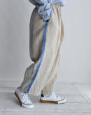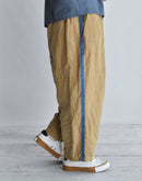 ゆったりとしたシルエットが心地よい、サイドラインのカンフーパンツです。