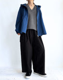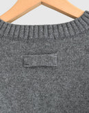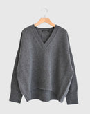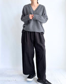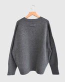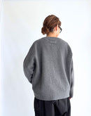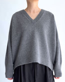 クラシカルなガンジーニットを現代的に解釈した、ビッグシルエットのVネックニット「AURA」。 伝統的なディテールを受け継ぎながら、肩を落としたリラックス感のあるフォルムに仕上げ、大人の女性が日常に取り入れやすい一枚となっています。 素材には、カシミヤをブレンドしたラムズウールを使用。軽やかで柔らかな風合いと心地よい肌触りを兼ね備え、ローゲージならではの程よい厚みがありながらも軽量でストレスのない着心地を実現しています。 シンプルでありながら存在感があり、幅広いスタイリングに映える万能なプルオーバー。 Tシャツやシャツを重ねたレイヤードスタイルにも相性がよく、季節を通して活躍する上質なニットです。日本製