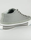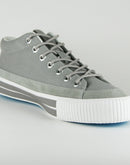 RFWを代表するモデルの一つBAGEL-MIDから初期に製作したキャンバス&スエードのモデル「STD」をアップデートさせました。BAGELの特徴であるミッドカットスニーカーはくるぶし丈で履き口がすっきりと作られており、シューレースを締めると足全体を優しくホールドしてくれます。履き口周りにはパッドが入っているので、フィット感は抜群です。またソールに配置した2本の太い黒いラインもポイントです。アウトソールはRFWのブランドカラーのシアンブルー(水色)になります。クッション性のあるPUインジェクションのカップインソールが足への負担を軽減し、快適な歩行をサポートします。アウトソールはしなやかながら耐久性の高いラバーソールになります。