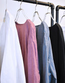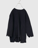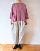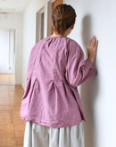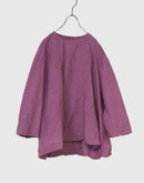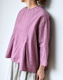 タックを取ることで、美しいシルエットが演出されたブラウス 膨らみとムラ感を宿した染めの風合いが、シンプルな佇まいにこなれた余韻を添える。made in Japan