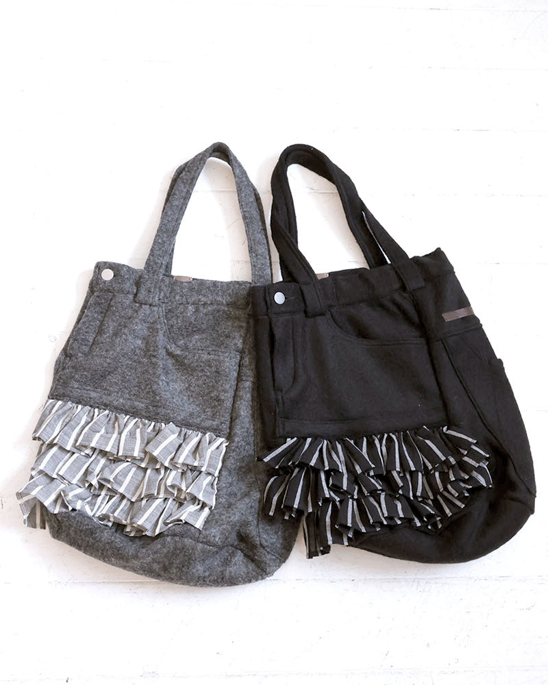 ウール57%ポリエステル43%裏地: 綿100%F:タテ35cm ヨコ33cm マチ18cm 持ち手56cm